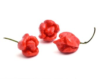 A super-hot chili pepper cultivated by Ed Currie of PuckerButt Pepper Company in Fort Mill, South Carolina. This pepper is known for its somewhat fruity sweetness and averages peak heat levels of 2.2 million SHU's.