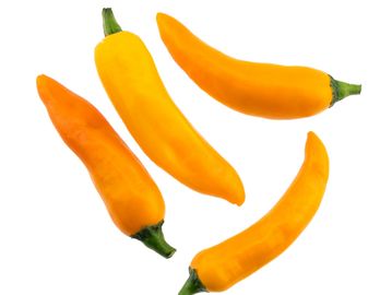 A mild, thin-skinned pepper prized for its tangy and slightly sweet flavor, especially when pickled. The brining process enhances the pepper's natural tang, making it a great contrast to rich or savory foods. A staple in Italian and Greek cuisine, they are frequently served as a garnish on salads, sandwiches and antipasto platters. These peppers are typically harvested while pale yellow or green but can also be allowed to fully ripen and turn red. 100 - 500 SHU's.